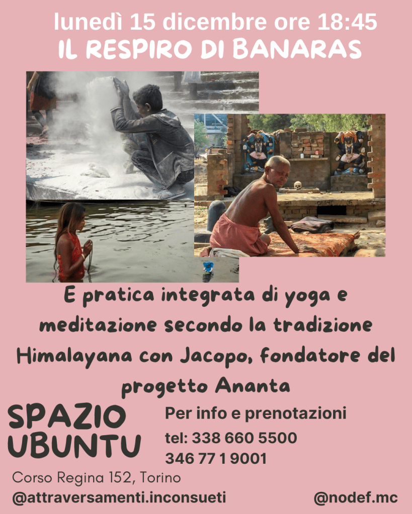 Con grande gioia lunedì 15 dicembre alle 18:45 saremo ospiti di Jacopo presso lo SPAZIO UBUNTO per un evento immersivo in cui alla nostra presentazione seguirà una pratica di yoga integrato secondo la tradizione Himalayana condotta da Jacopo. Con Jacopo ci siamo conosciuti nel 2020 poco prima del lockdown indiano, giorni di eccezionale fervore e confusione: lui stava per rientrare in Italia e noi per rimanere bloccati e “imprigionati” a Varanasi per quasi due mesi. Quest’incontro è anche un ritrovarsi: un riflettere anche partendo da quello che abbiamo condiviso in quei giorni.